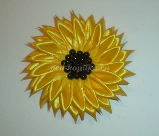 Серединку заполняем бусинами/бисером или розеткой из узкой атласной ленты.