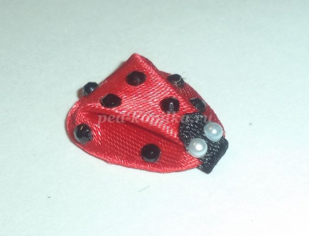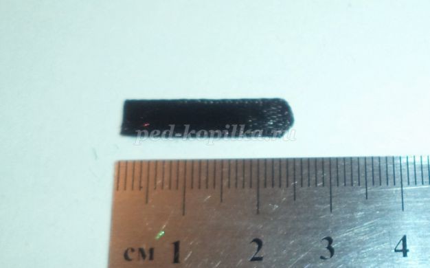 Приклеиваем полоску черного цвета округлой стороной сверху, оствшаяся часть ленточки или обрезается, или просто подклеивается внутрь.