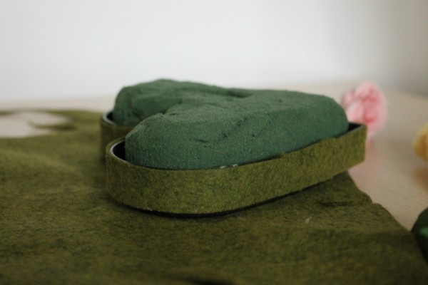 В процессе работы я вдруг поняла, что мне не нравится черная пластиковая основа сердечка. Поэтому я отрезала полоску фетра и приклеила к пластиковой кромке. (Вместо фетра можно было использовать ленты, ткань или раскатать полоску глины, но мне захотелось использовать фетр, потому что он чем-то похож на мох).