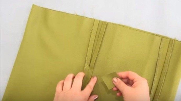 Для удобства сторона квадратика должна быть чуть больше двух припусков на швы обрабатываемого разреза.Долевую нить квадратика лучше расположить перпендикулярно шву.