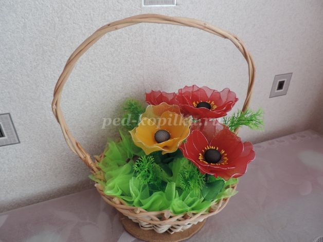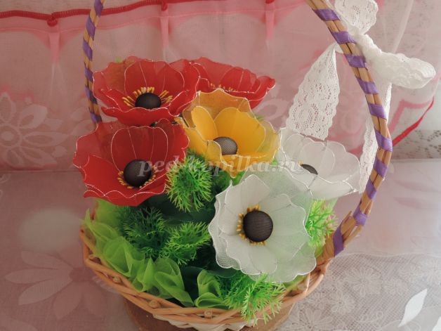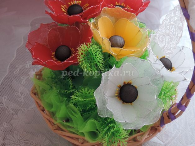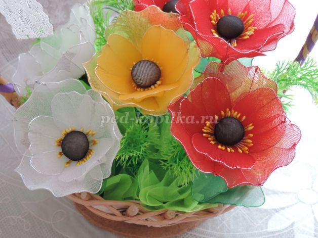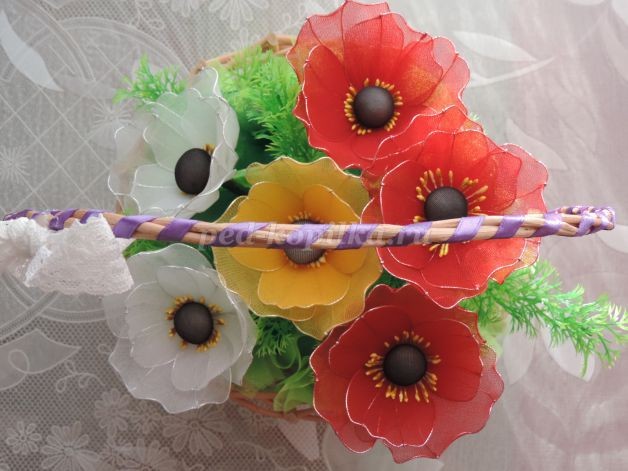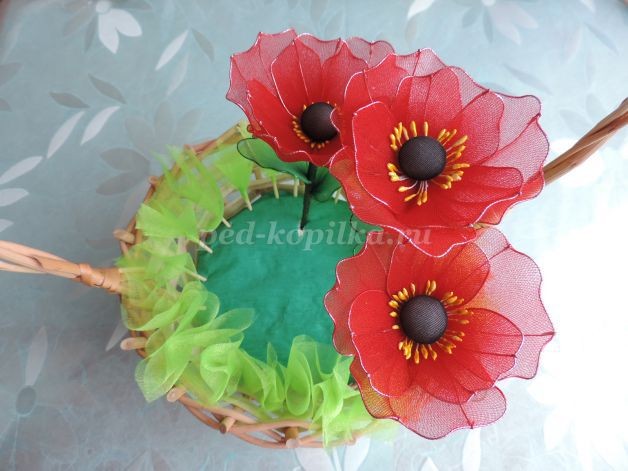 Маки из капрона и проволоки: часть 3