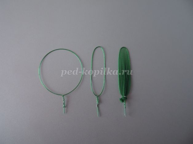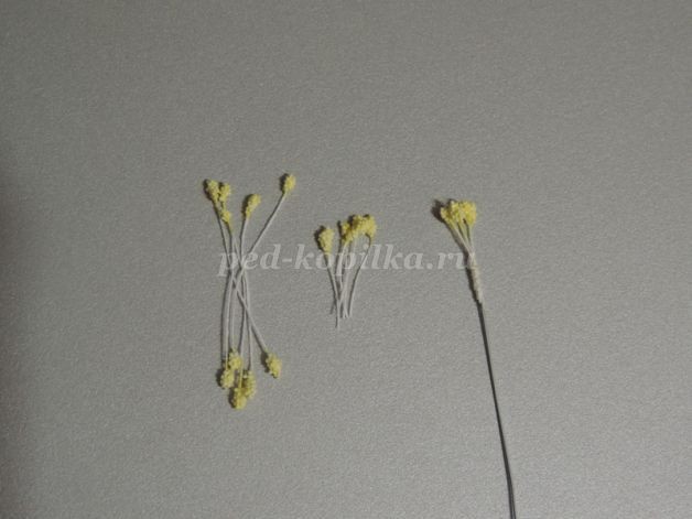 4. Взять 5 тычинок. Разрезать пополам и нитками закрепить к проволоке.
