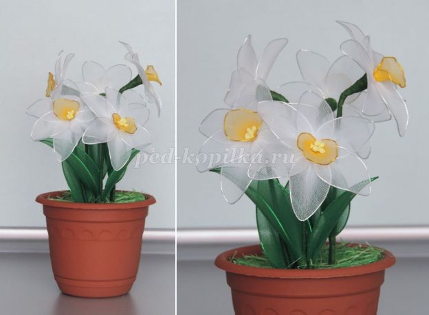 Нарциссы из капрона и проволоки: часть 1