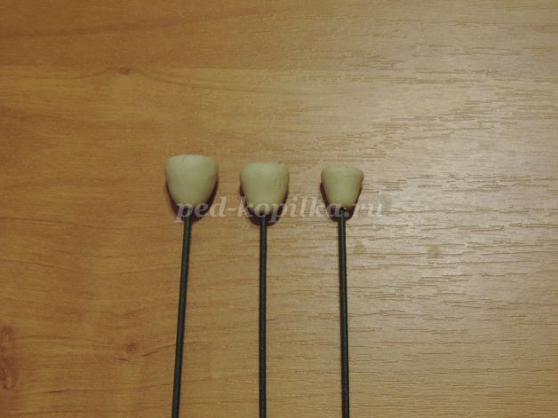 1. Для начала работы сделаем плод лотоса. Из массы для лепки скатываем шарик и придаем ему форму плода.