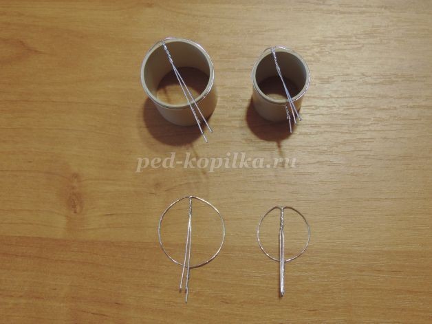 5. Затем на шаблоне придать круглую форму и концы скрутить при помощи плоскогубцев. Кончики проволоки находящиеся в середине не скручиваем. В дальнейшем мы их закрепим нитью.