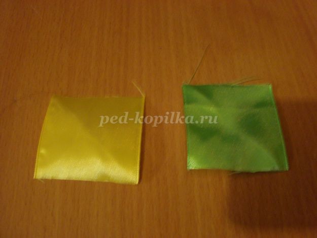 15) Займемся двойными лепестками. Вырезаем 12 желтых и 12 салатовых квадратов.