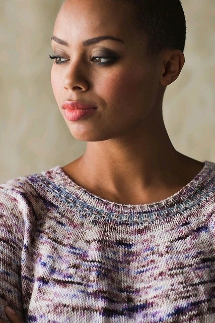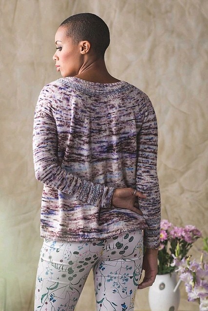 Топ с круглой кокеткой из радужной меланжевой пряжи