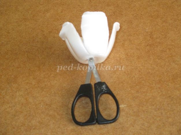 Проделываем отверстия острыми ножницами в каждой чашечке с лепестками.
