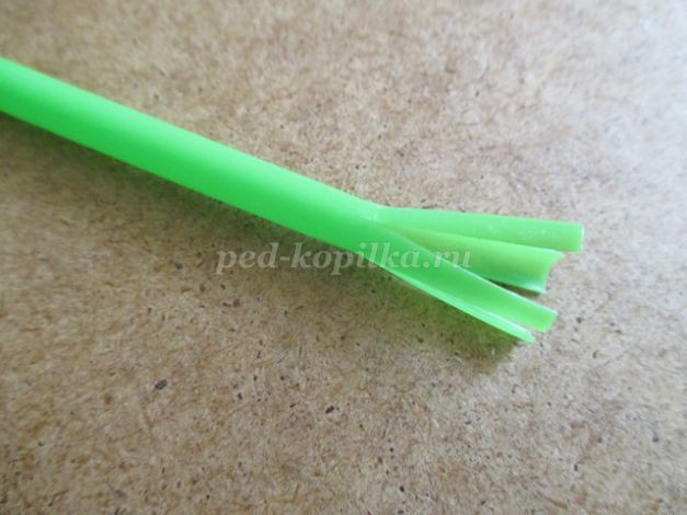 Разрезаем один конец коктейльной трубочки на несколько частей (произвольно).