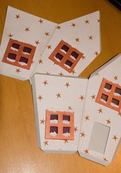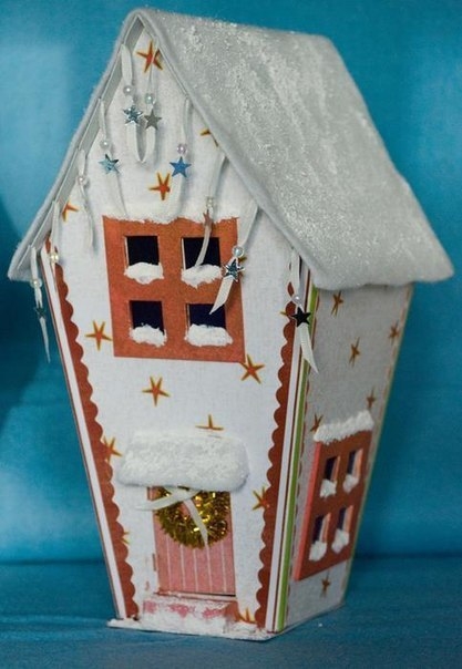 Садимся поудобнее и продолжаем подготовку к Новому году. На сей раз хочу предложить вам смастерить такие вот чудесные мини домики. Их можно развесить на елку или еще куда-нибудь поставить, это уже как вы пожелаете. Сделать такой домик совсем несложно. Для работы нам понадобится картон, ножницы, клей, краски, можно использовать всякую новогоднюю мишуру, бусы, ленточки, войлок или вату для снега, блестки