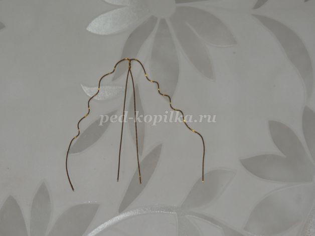 3. Полученную заготовку закрепляем на шаблоне. Усики, находящиеся в центре пока не крепим.