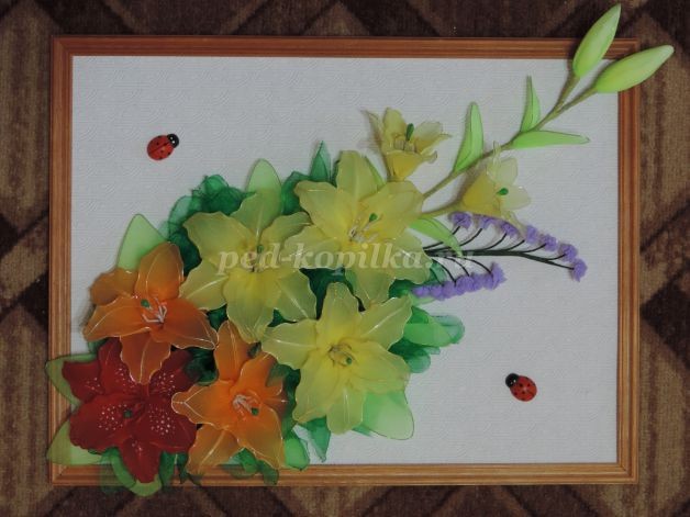Часть 3 https://www.diyideas.ru/48078-kompozicija-s-lilijami-iz-kaprona-i-provoloki-chast-3.html