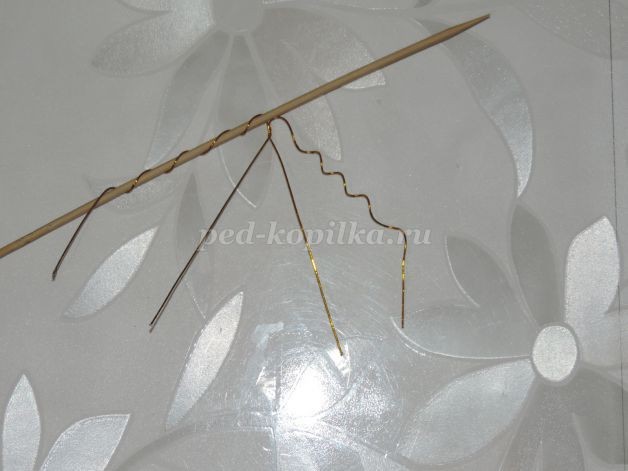 2. Длинные усики поочередно намотать на шпажку. Получается вот такая заготовка.