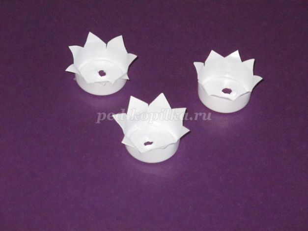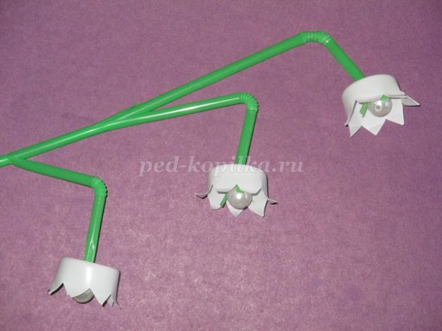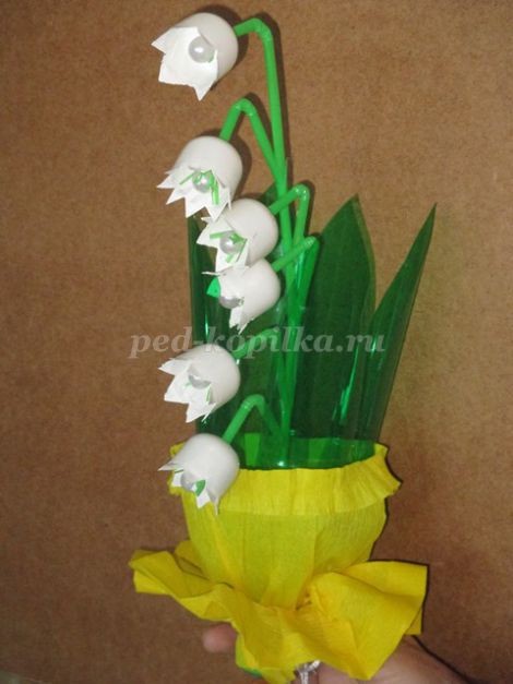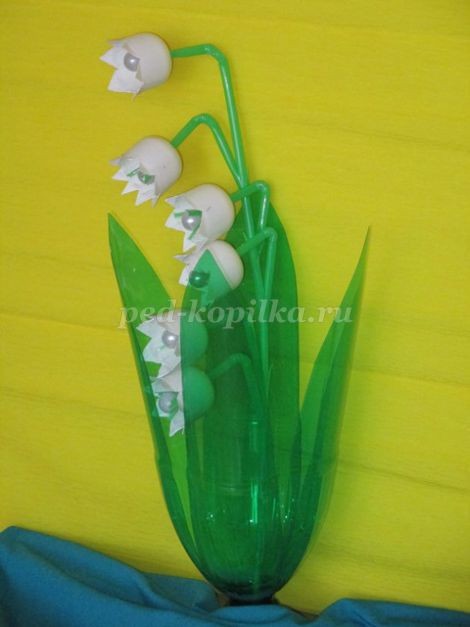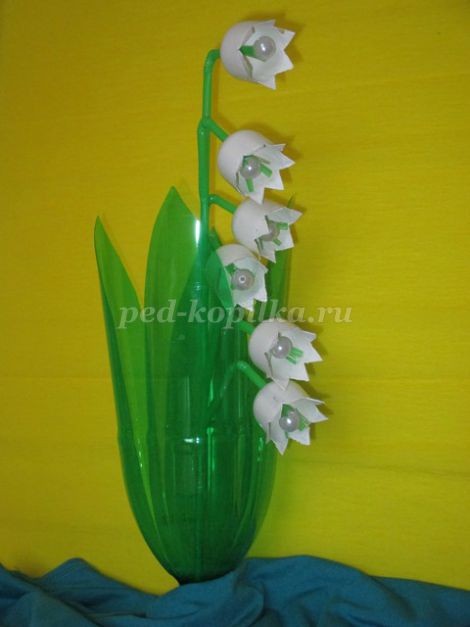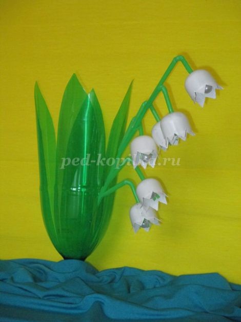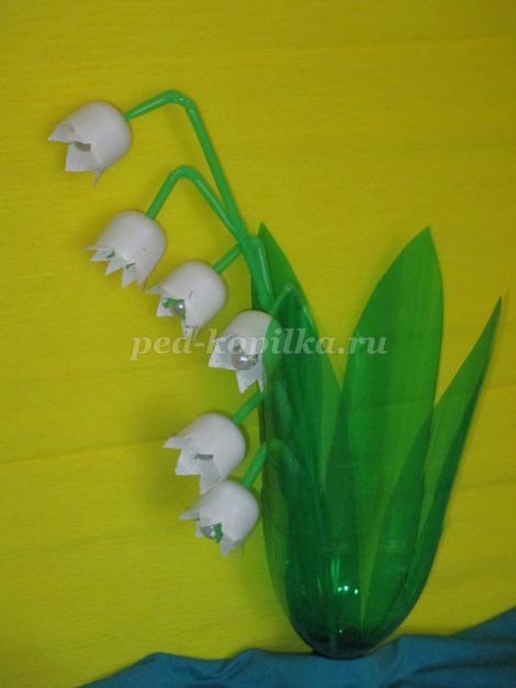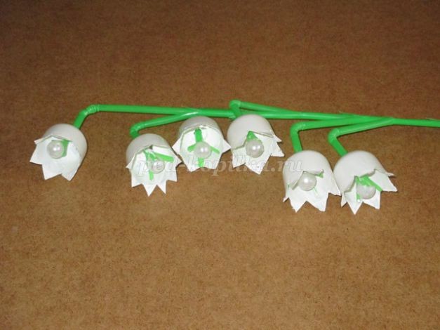 18. Цветы ландыша можно сделать из маленьких упаковок от сливок, обрезав выступы.