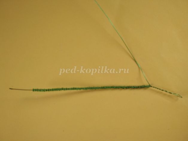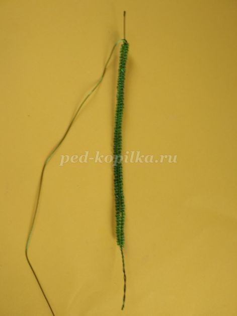 На рабочий конец проволоки наберите примерно 75-80 бисеринок и обмотайте основание.