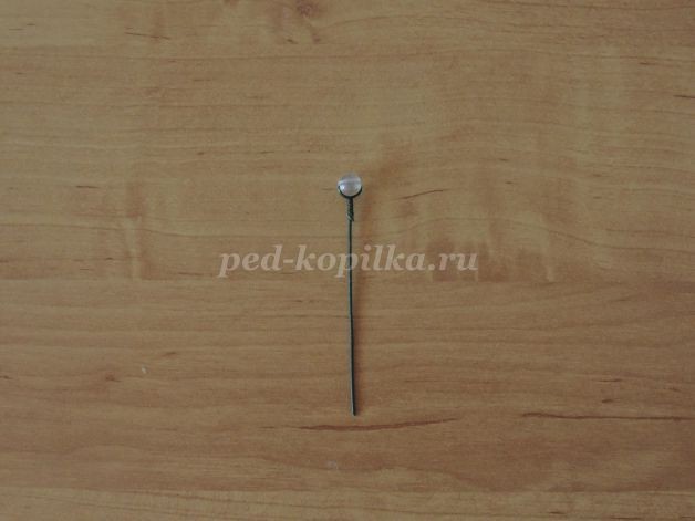 В бусину продеваем флористическую проволоку 1,2 мм и закручиваем используя плоскогубцы.