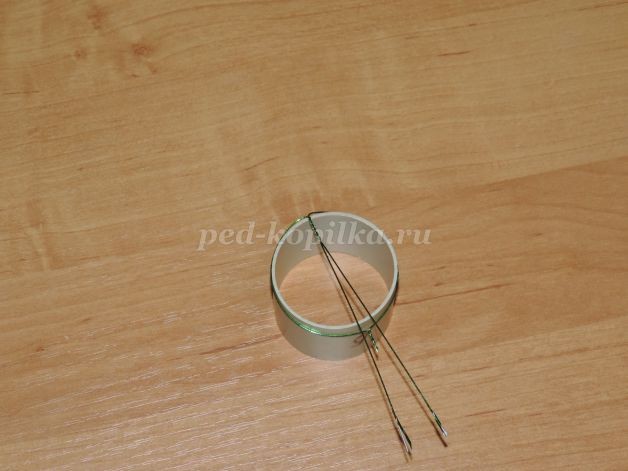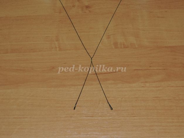 Подготавливаем листики. Скрутить две проволочки. Сделать шаблон на № 6. По центру оставить длинные «хвостики».
