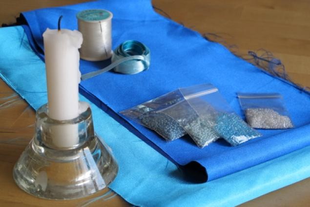 В данном случае мне нужны были три цветка - синий, голубой и смешанный. Бисер пришиваю, одновременно соединяя лепестки все вместе.