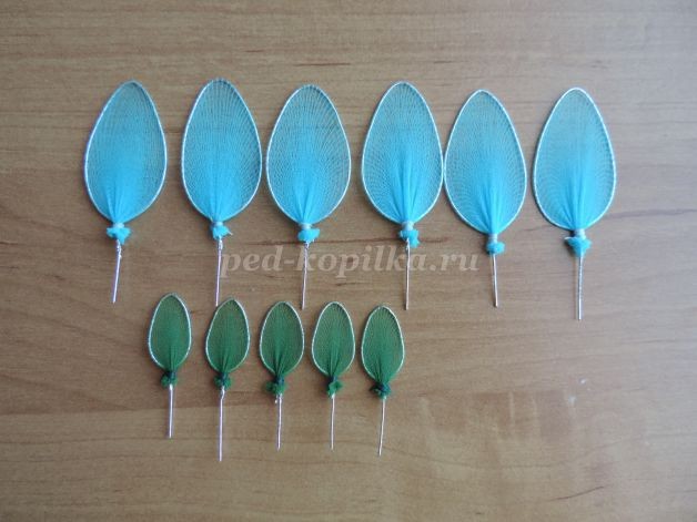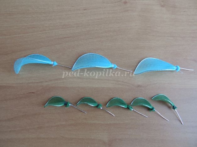 3. Берем 3 больших и 5 маленьких лепестков и придаем им изогнутую форму.