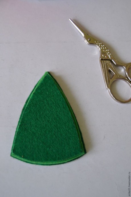 2. Нарезаем фетр по выкройке, у нас получилось три части брошки, та часть, которая имеет больший размер, будет основанием нашей брошки.