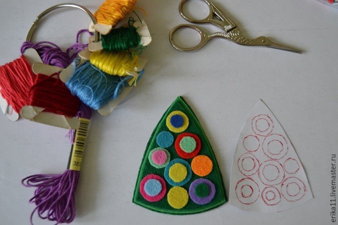 3. Шарики рисовала произвольно на бумаге, чтобы потом приложив к фетру было удобно их вырезать.