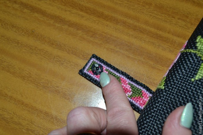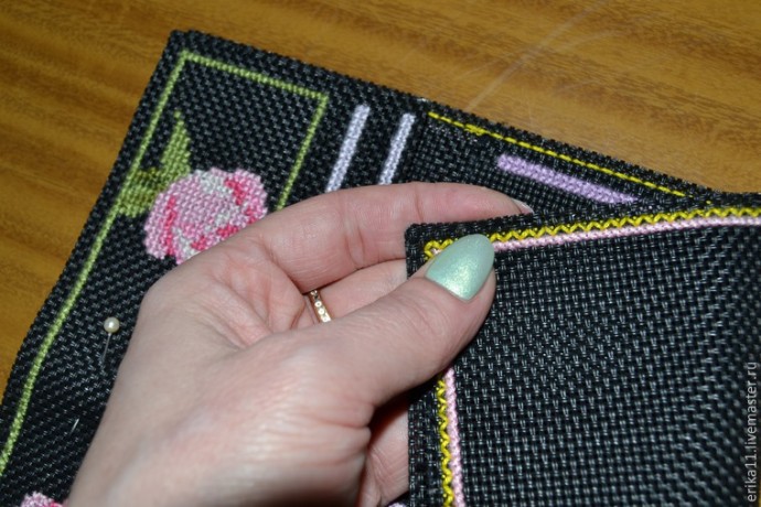 Процесс не из легких, особенно, в боковых частях кошелька, так как там нужно прошить сразу 4 канвы.
