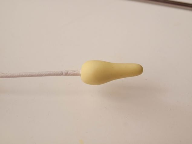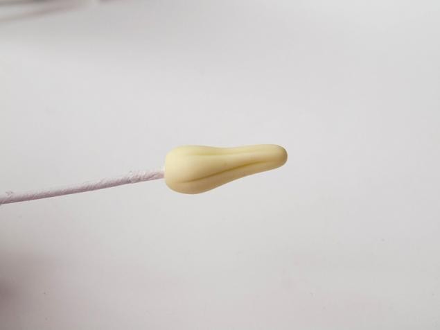 Приплющиваем острый кончик, чтобы он стал тупым. Это нужно нам для того, чтобы потом прикрепить верхнюю часть пестика.