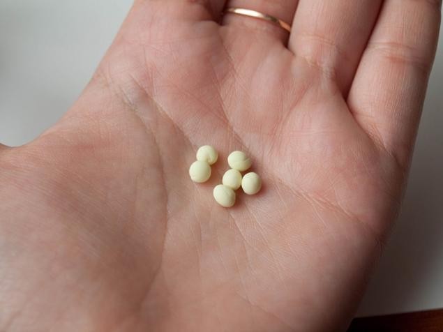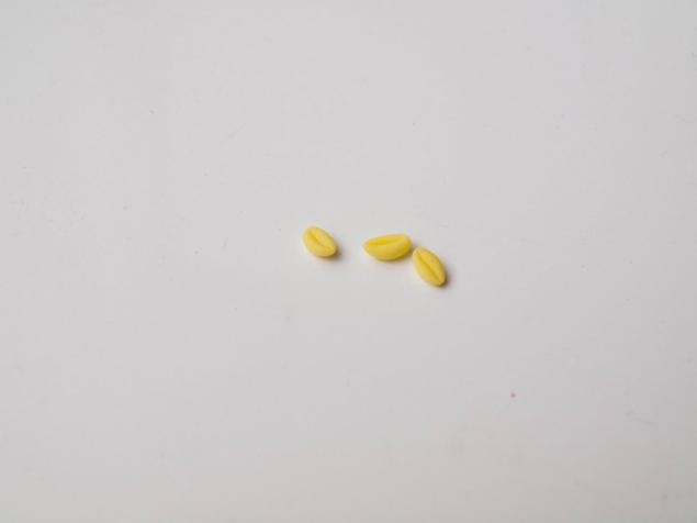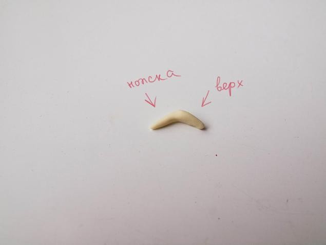 Отрываем три совсем крошечных кусочка, с рисовое зернышко каждый, и раскатываем их.