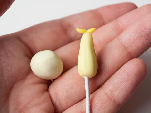 А нижнюю часть немного вытягиваем в тонкую ножку. Делаем еще пять таких же заготовок.