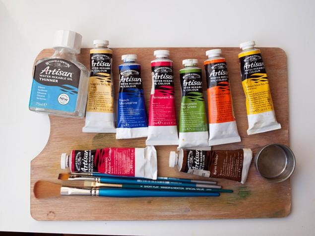 Затем я обязательно наношу их все на палитру. Я могу не использовать даже половину цветов, но всегда лучше, когда у вас под рукой все краски и не нужно лезть и искать очередной тюбик. Итак, мы немного оттеняем желтовато-оранжевым лепестки возле ножки (1), тем же цветом подкрашиваем края лепестков (2), травяной зеленой тонируем листики, добавляя им разнообразие (3), подкрашиваем так же саму ножку (4) и тонируем цветочки, усиливая контраст цвета (5). Здесь главное не переборщить. Масло имеет привычку блестеть и много краски смотрится некрасиво, слишком грубо и искусственно. Я наношу очень тонким лессировочным слоем. Если надо, то делаю несколько слоев с просушкой.