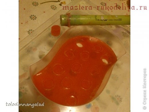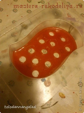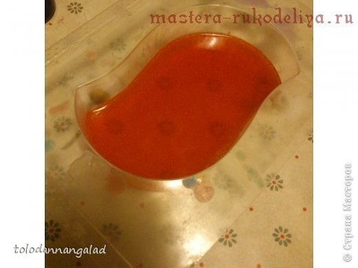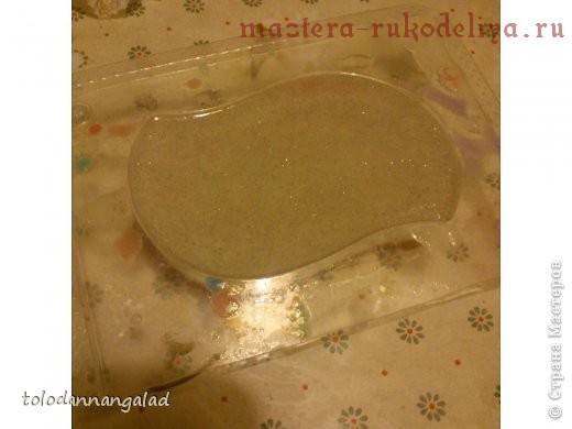 Заливаем в нашу пластиковую форму таким образом, чтобы залитый слой составлял примерно одну треть от всего объёма формы. Ждём застывания.