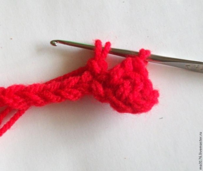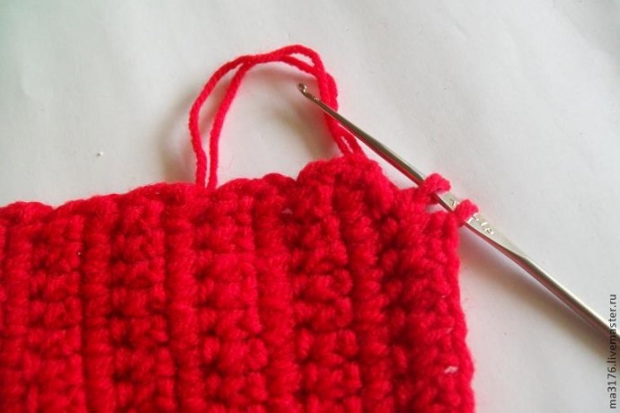 Не забываем в начале каждого ряда добавлять две петли для подъема.