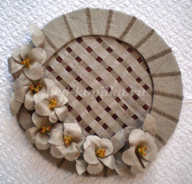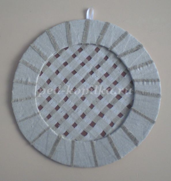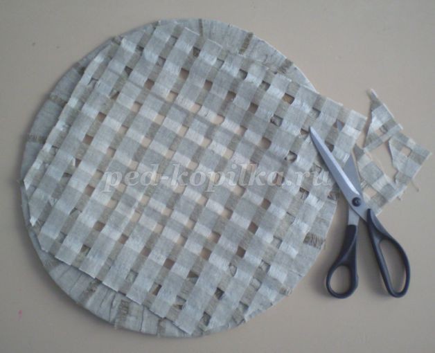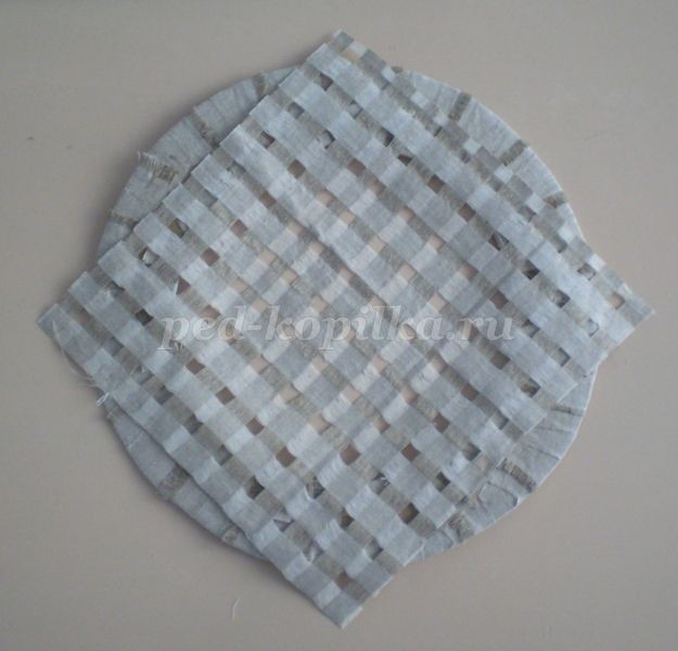 12. Полученную сеточку приклеиваем к кругу с изнаночной стороны, срезаем уголки.
