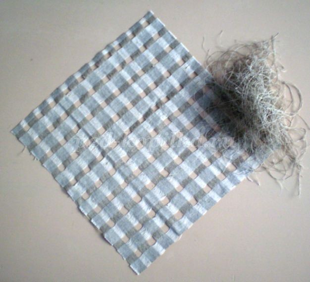 11. Из мешковины выкраиваем квадрат 37*37, выдергиваем нити так чтобы получилась сеточка.