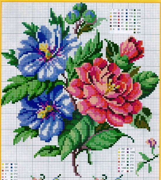 Схемы вышивки цветовНекоторые вышивают, чтобы повесить картины на стену под стекло.Кто-то любит вышивать на подарок.А кто-то вышивает просто из безудержной страсти к этому процессу...