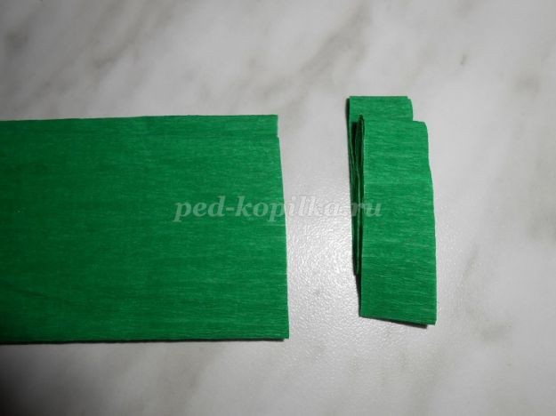 Для стебелька от рулона зеленой бумаги отрезаем кусок 1-1,5 см на всю толщину.