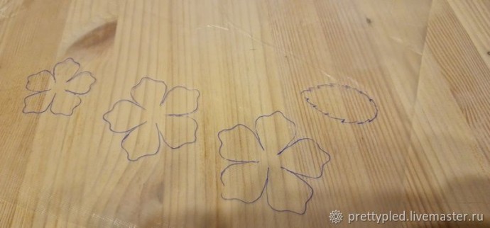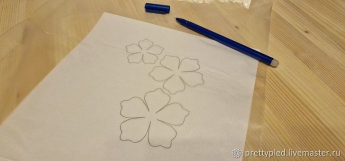 Подкладываем под 1 слой пленки наши шаблоны и наносим контур шариковой ручкой. Гелевую лучше не использовать.