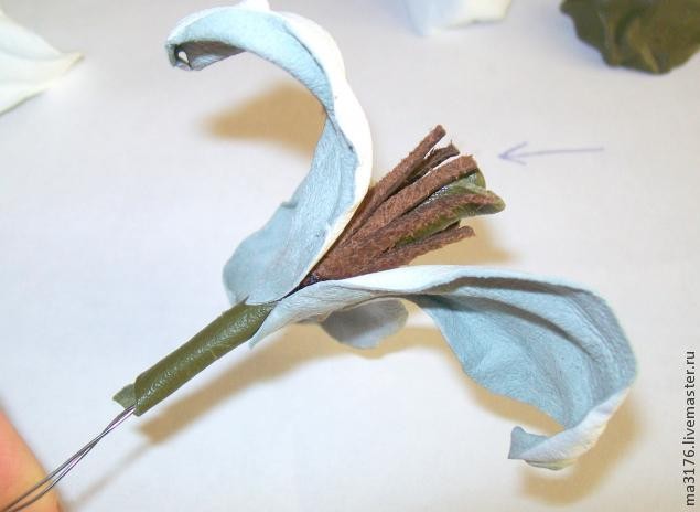 Стебелек приклеиваем и загибаем горизонтально, а цветочек должен смотреть вверх.