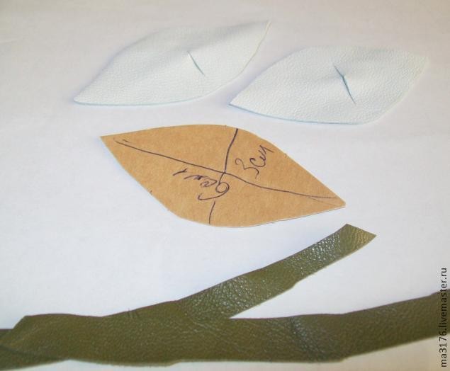 Вырезаем два лепестка (на него мы будем клеить цветок) и две полоски (ими обмотаем стебельки).