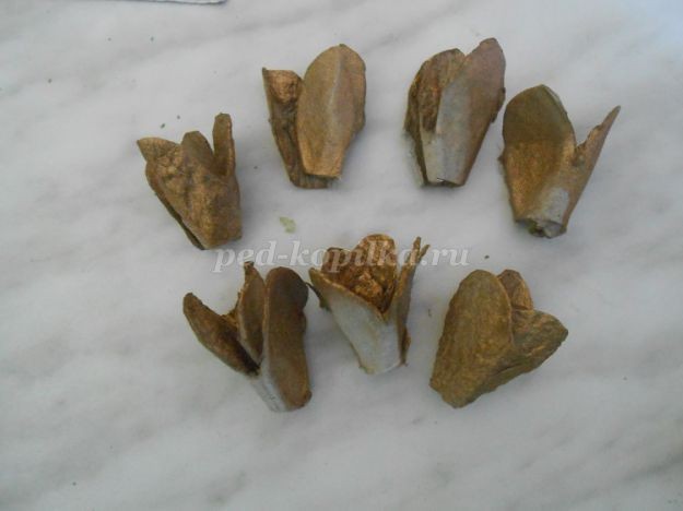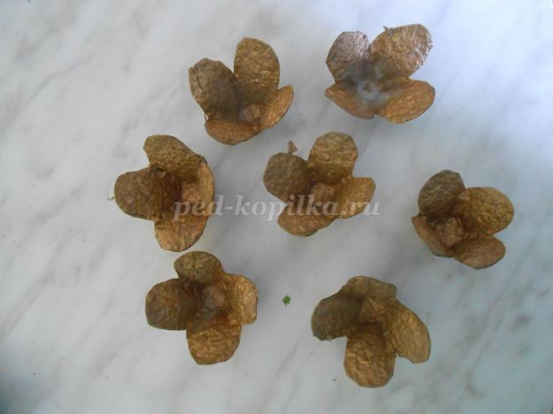 У двух частей лепестки отгибаем пальчиками осторожно в стороны.