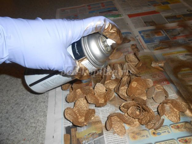 Раскладываем на газете, осторожно окрашиваем каждую деталь с двух сторон.