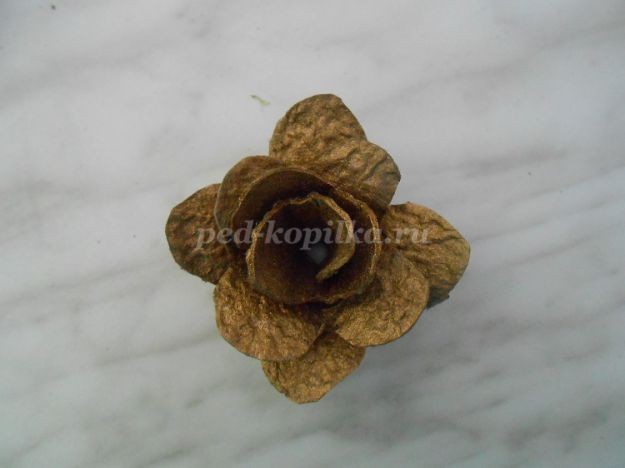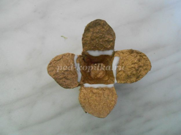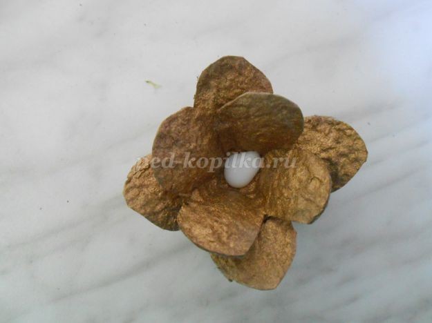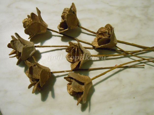 Внизу каждого цветка делаем отверстие и вставляем в него веточку.