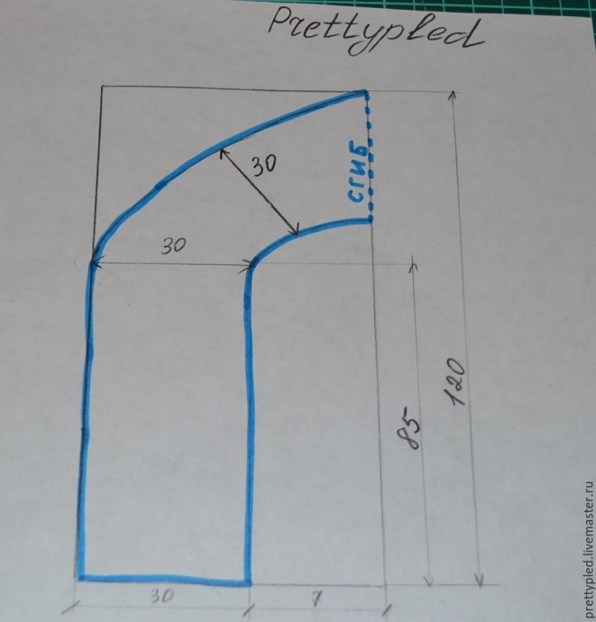 Итак, начнем с построения выкройки. Все размеры представлены на фото.