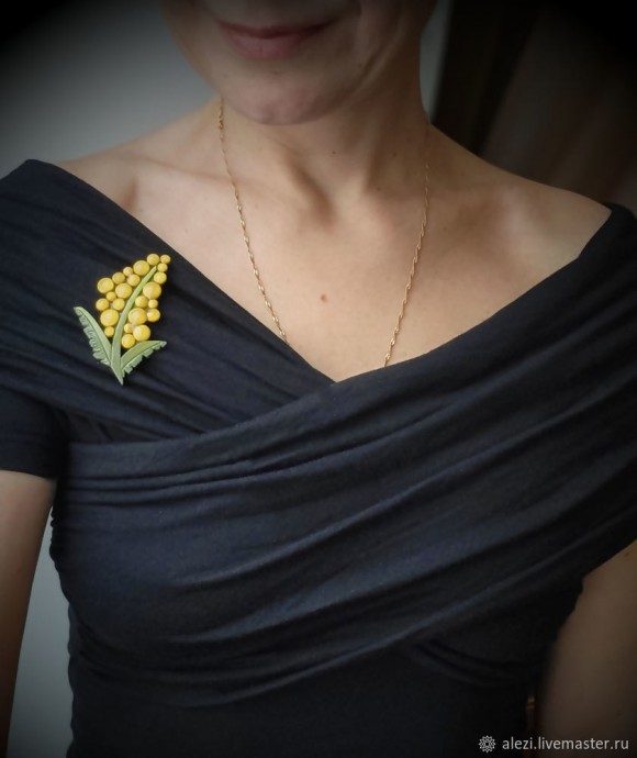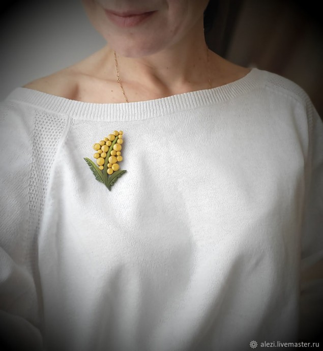Когда я раскатывала подложку на паста-машине, у меня образовался так называемый рваный край. Мне показалось довольно симпатичным добавить его тонким срезом к листикам. Стало больше напоминать листья мимозы.