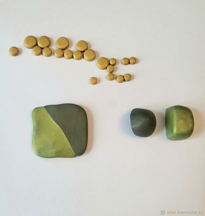 1) полимерная глина золотистого (можно жёлтого, лимонного) и зелёного цветов.