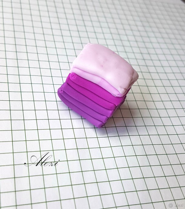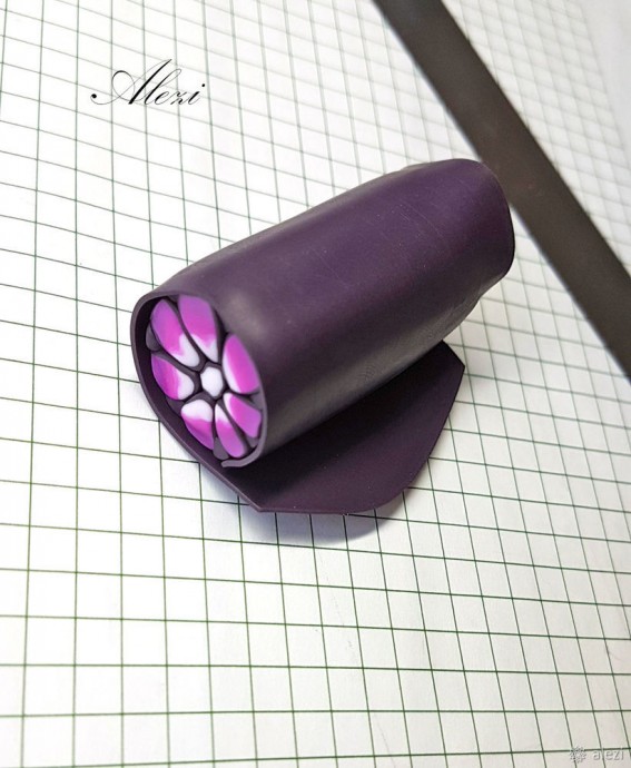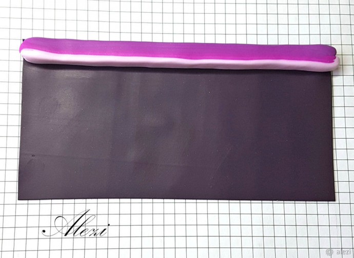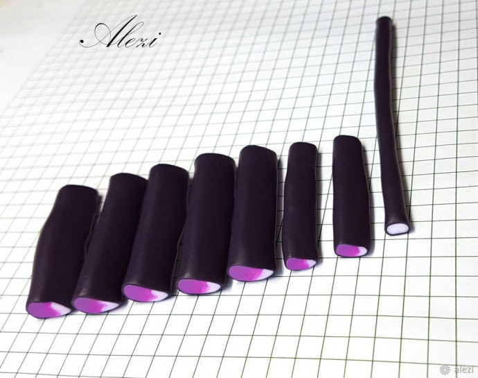 Вытянув эту стопочку в длинную колбаску, оборачиваем её темно-фиолетовой глиной.