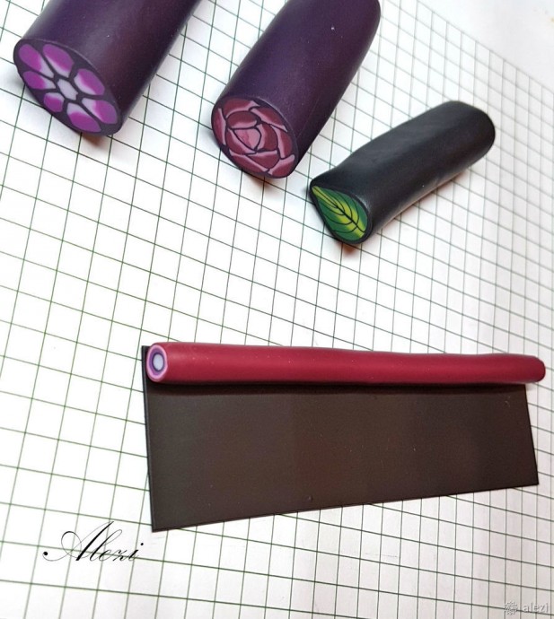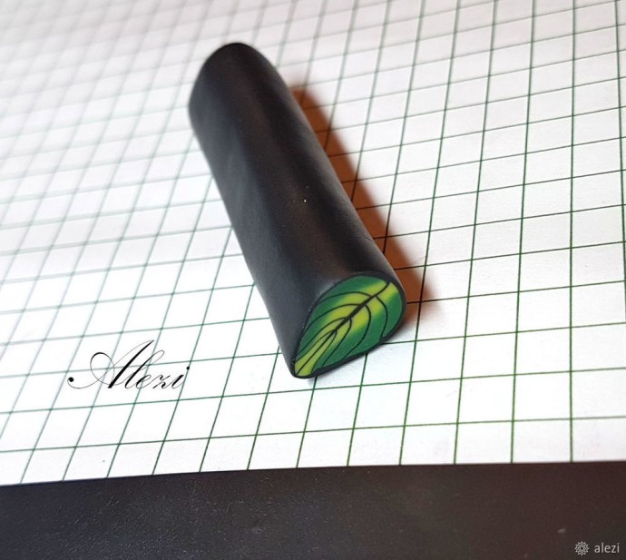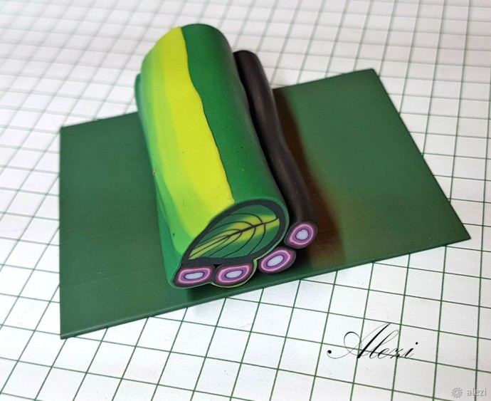 Нарезав разноцветную трость на колбаски, я их добавила к листику, чередуя с зеленым пластом. Тут можно фантазировать, как угодно.