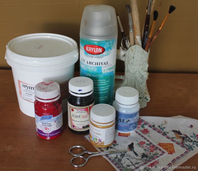 5. Клей для декупажа, салфетки с рисунком в японском стиле;