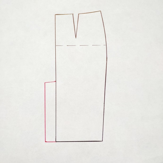 Заужаем переднюю и заднюю половинки внизу по боковому шву на 2-3см