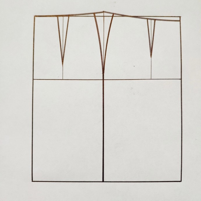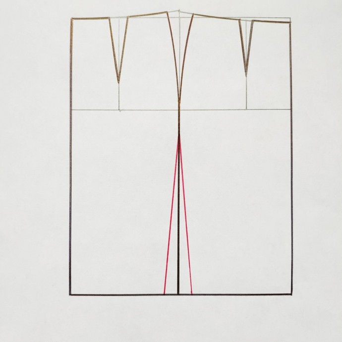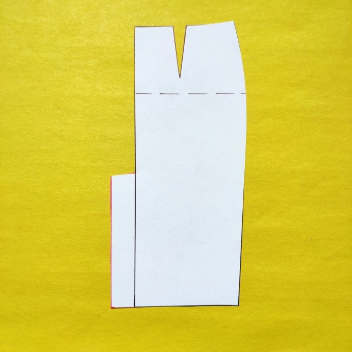 На задней половинке чертим шлицу. Ширина шлицы 5 см. Высота - от талии вниз 30-35 см.